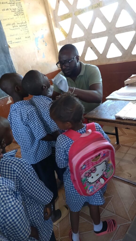 The project “Oral Health for All,” implemented by Afrikaada TeethSavers in Soma, Gambia, aimed to prevent and reduce oral diseases among schoolchildren through preventive treatment, education, and access to basic dental care. Oral diseases are widespread in the country, with surveys showing that more than half of children were affected by dental caries, and access to dentists and fluoride toothpaste is very limited.